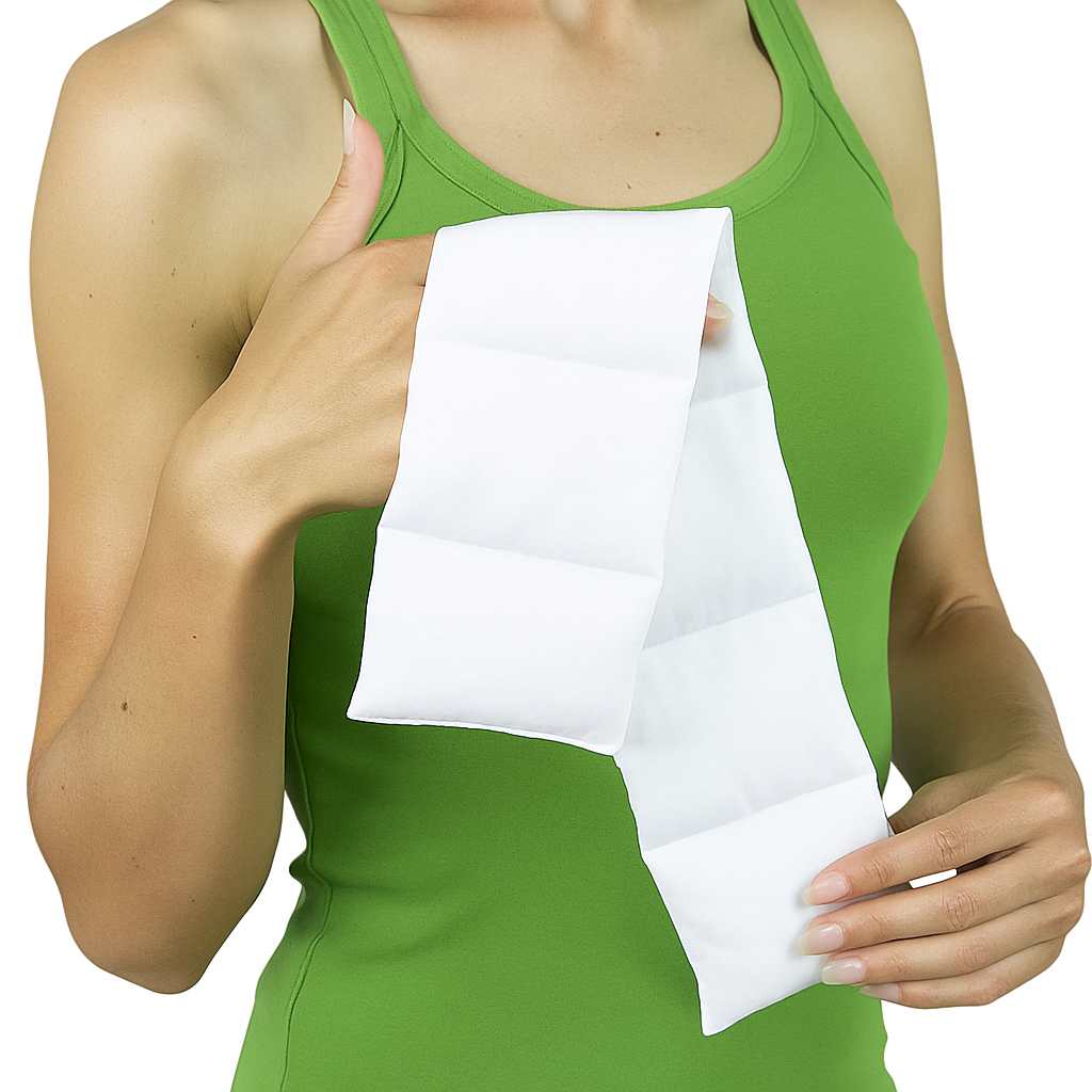 Longitudinal pillow (8 × 40 cm): designed for HydroCure adult throat and neck wraps (sizes 45–55 cm)